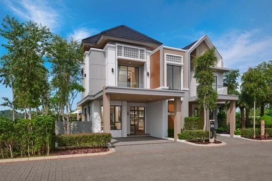 Adapun Cluster Evergreen, menyuguhkan rumah berdesain luxury modern tropical 2 lantai,, mulai dari tipe 120 hingga 168.